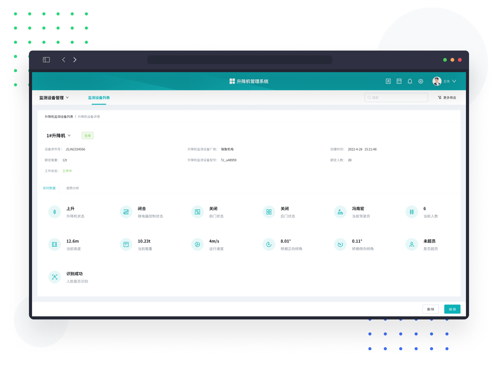 对施工电梯的爬升高度、当前高度、加速度、载重情况等数据进行监测。