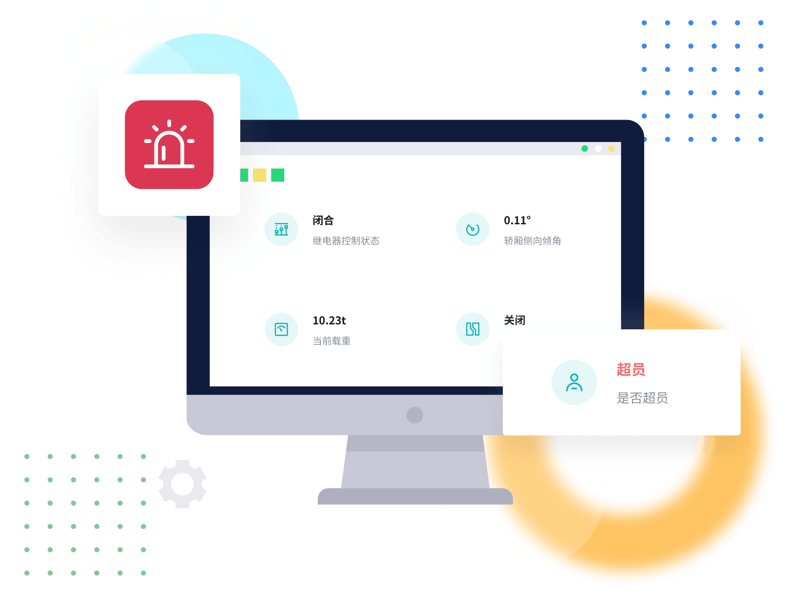 发现超员超载或者梯门为关闭、箱体倾斜的情况,系统会自动进行声光报警。