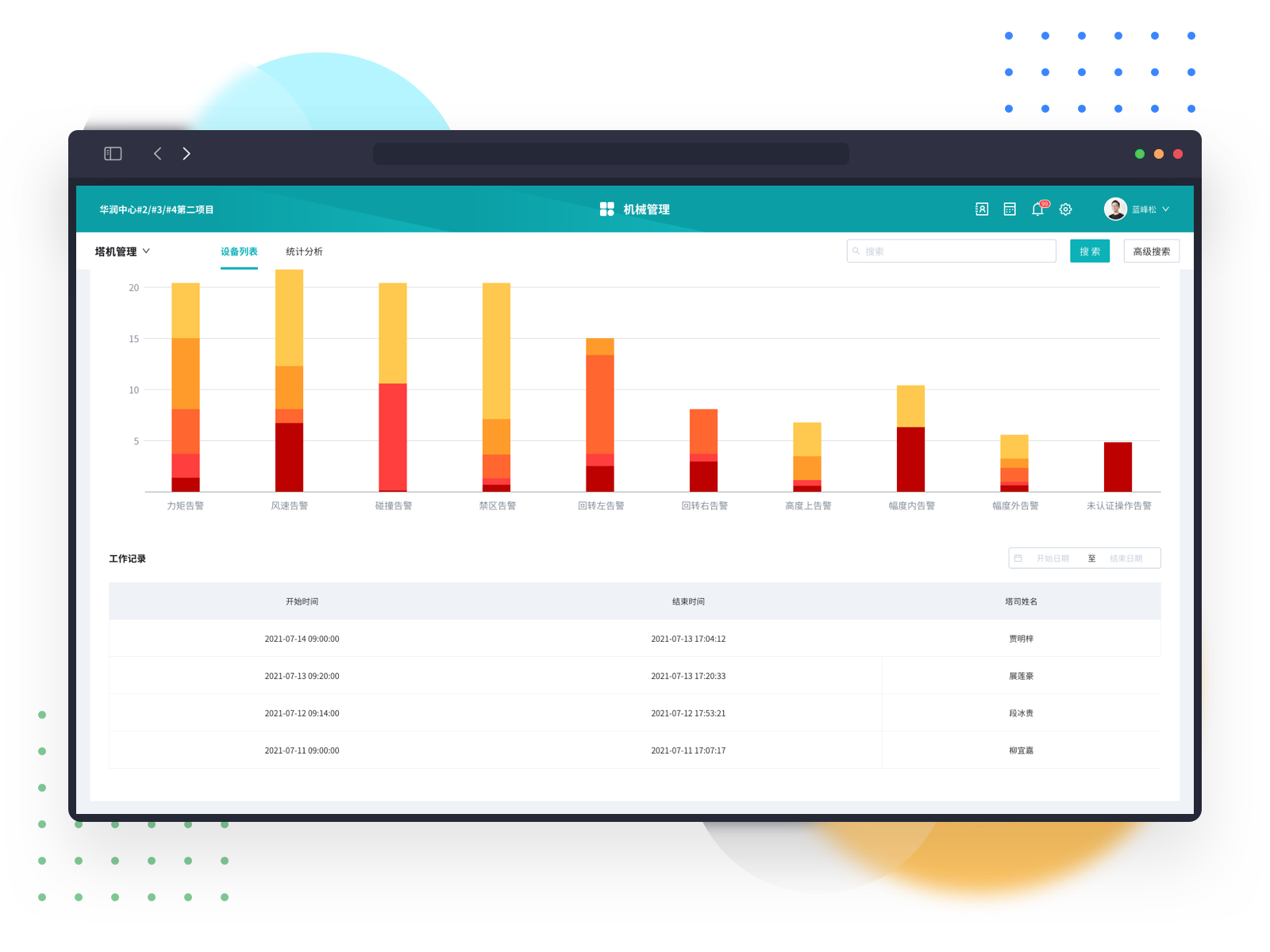 塔机告警数据系统留存,方便查询便于追溯。