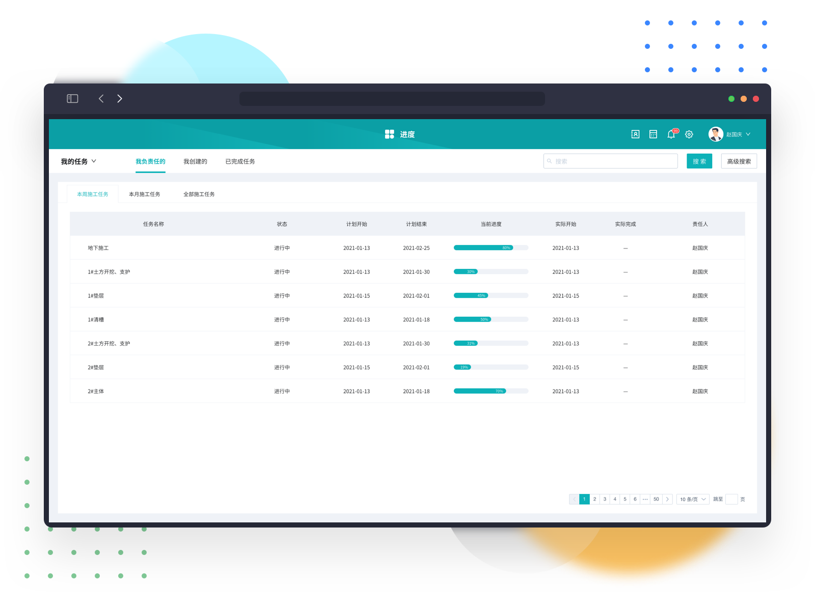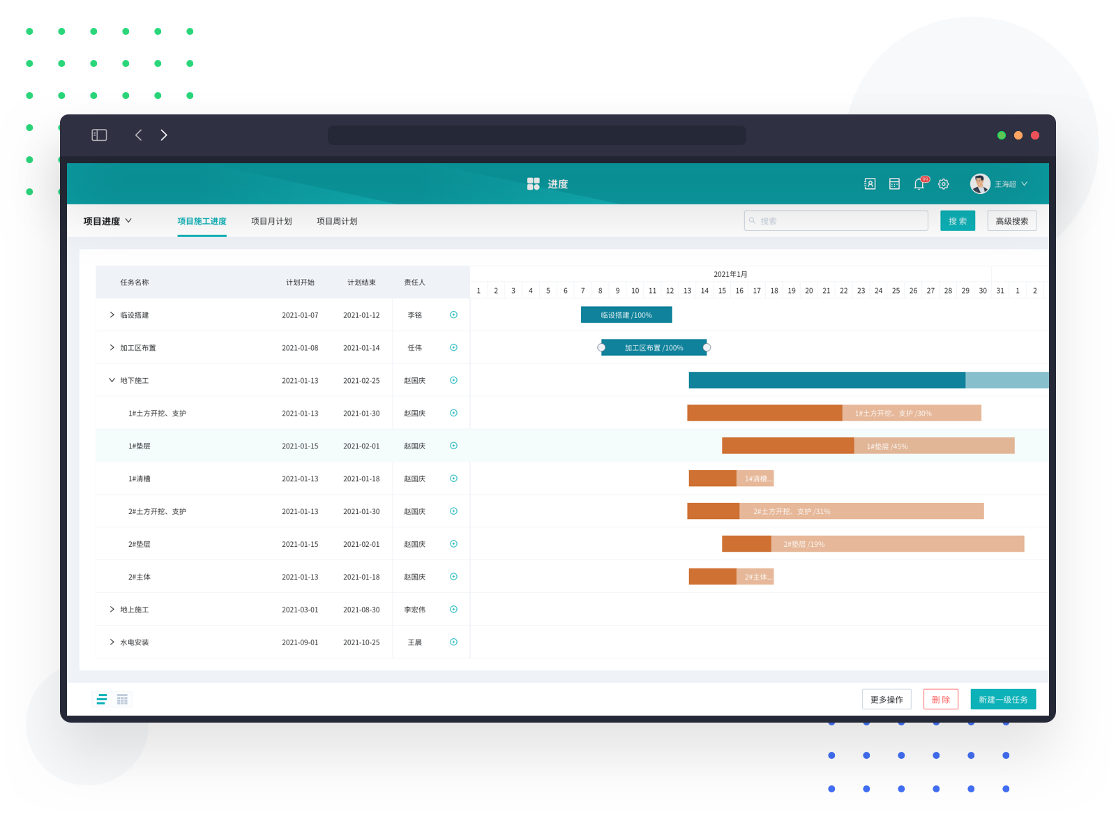 企业可在pc端和小程序查看不同项目施工任务完成情况,集中掌控多个项目进度。